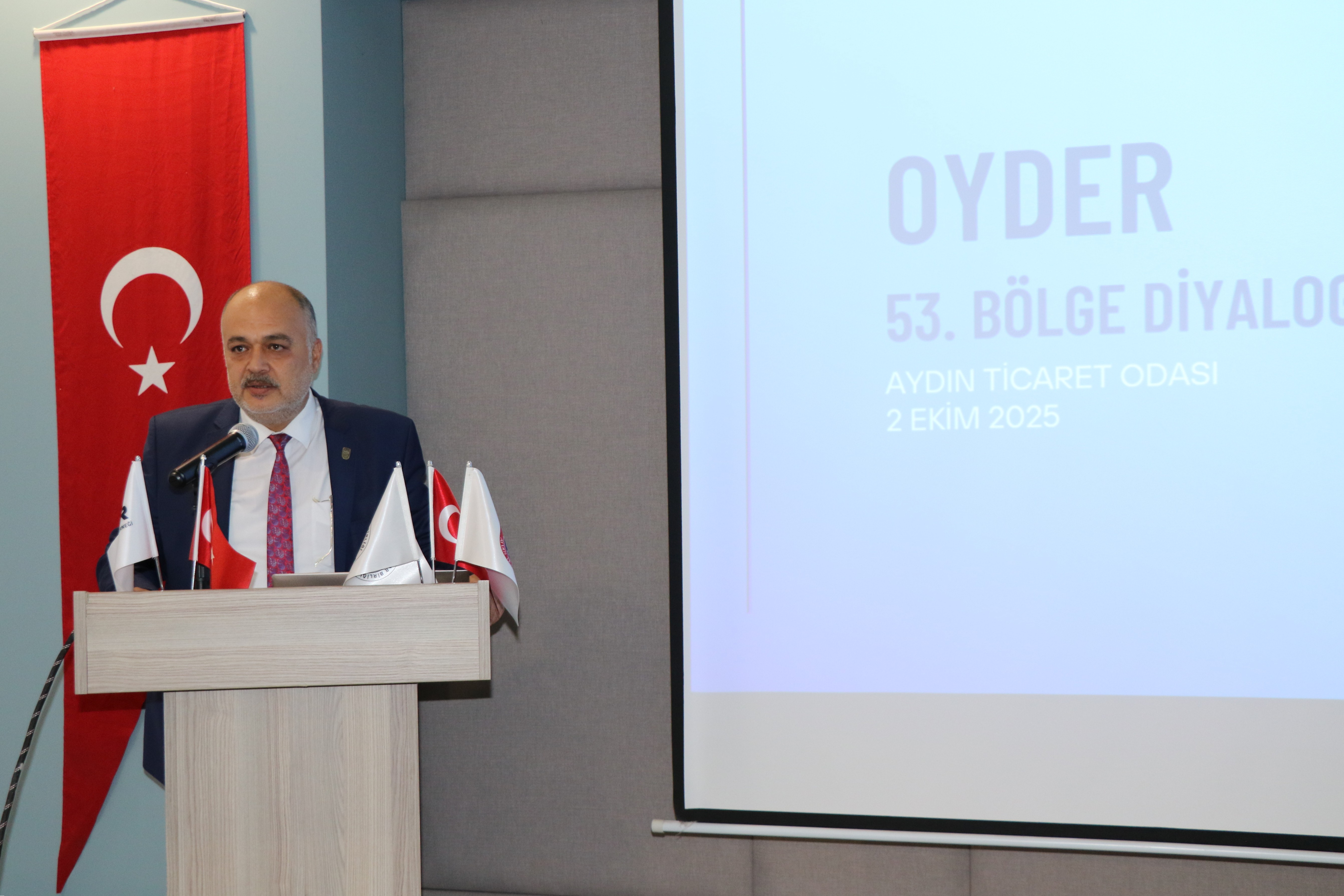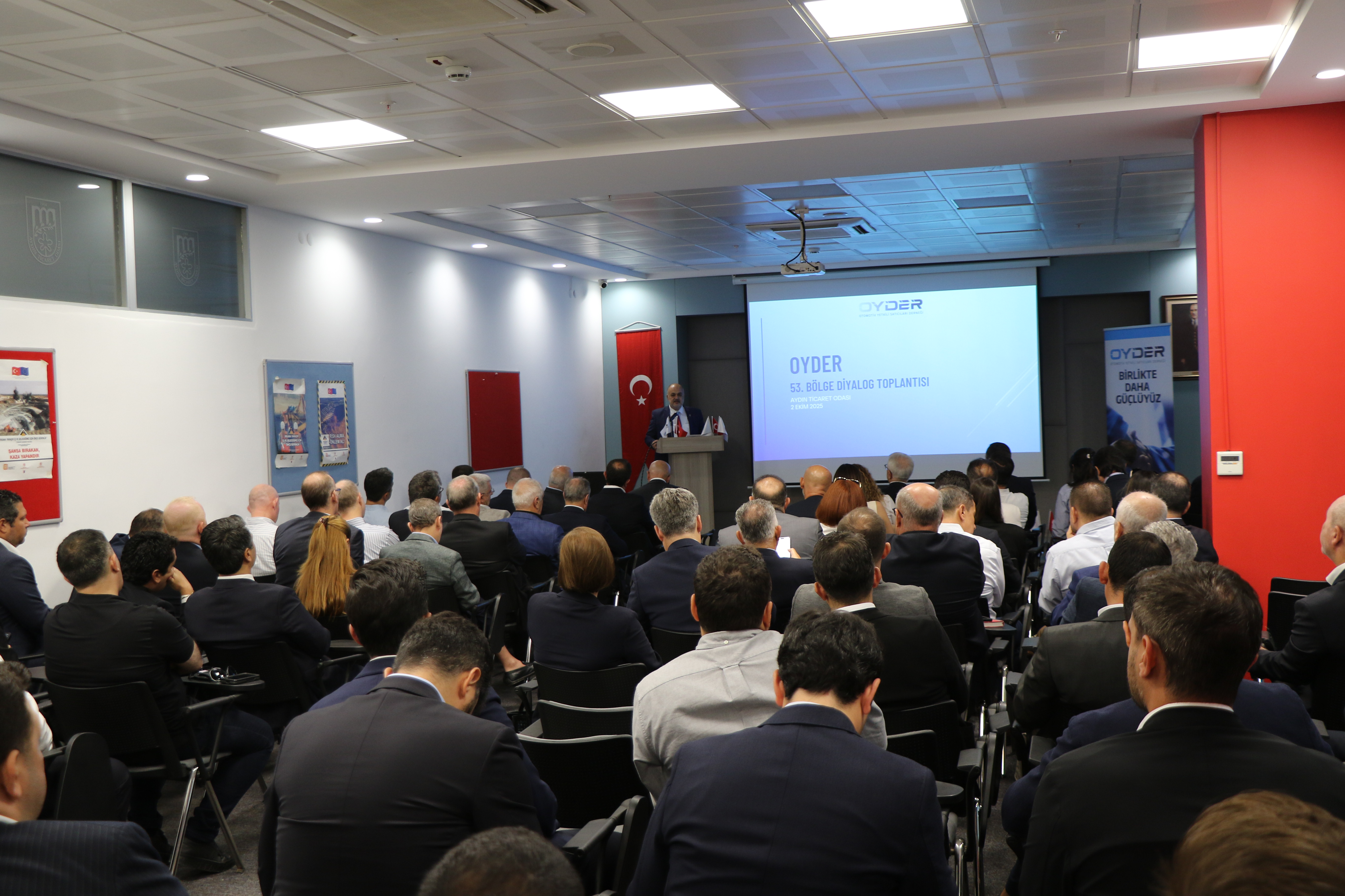 OYDER Aydın 53. Bölge Diyalog Toplantısı, Aydın Ticaret Odası Eğitim Salonu’nda gerçekleştirildi. Toplantıya Odamız Yönetim Kurulu Başkan Yardımcısı Ergün Evran, Meclis Başkan Yardımcısı Semih Çakır ve Yönetim Kurulu Üyesi Ufuk Hüseyin Devrim katıldı.