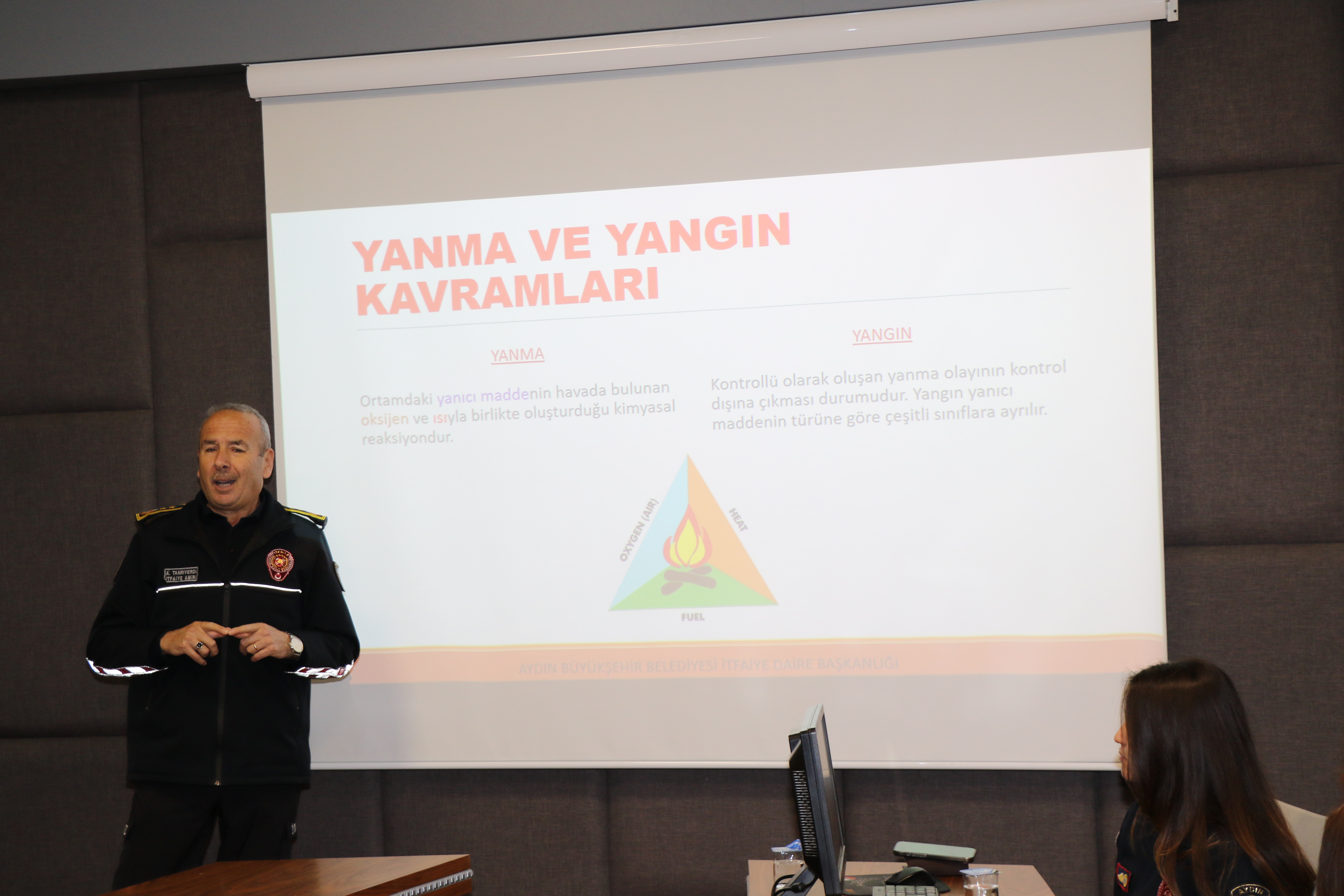 Aydın Ticaret Odası (AYTO) çalışanlarına yönelik “Temel Yangın Eğitimi” düzenlendi. AYTO Toplantı Salonu’nda gerçekleştirilen eğitimde, Aydın Büyükşehir Belediyesi İtfaiye Dairesi Başkanlığı’nda görevli İtfaiye Amiri Ahmet Tanrıverdi, olası yangınlara karşı alınacak önlemler, yangın anında yapılması gerekenler ve yangına müdahale yöntemleri hakkında AYTO çalışanlarını bilgilendirdi. Yangın söndürme cihazlarının kullanımı hakkında da anlatımda bulunan Tanrıverdi, AYTO çalışanlarından gelen soruları yanıtladı.