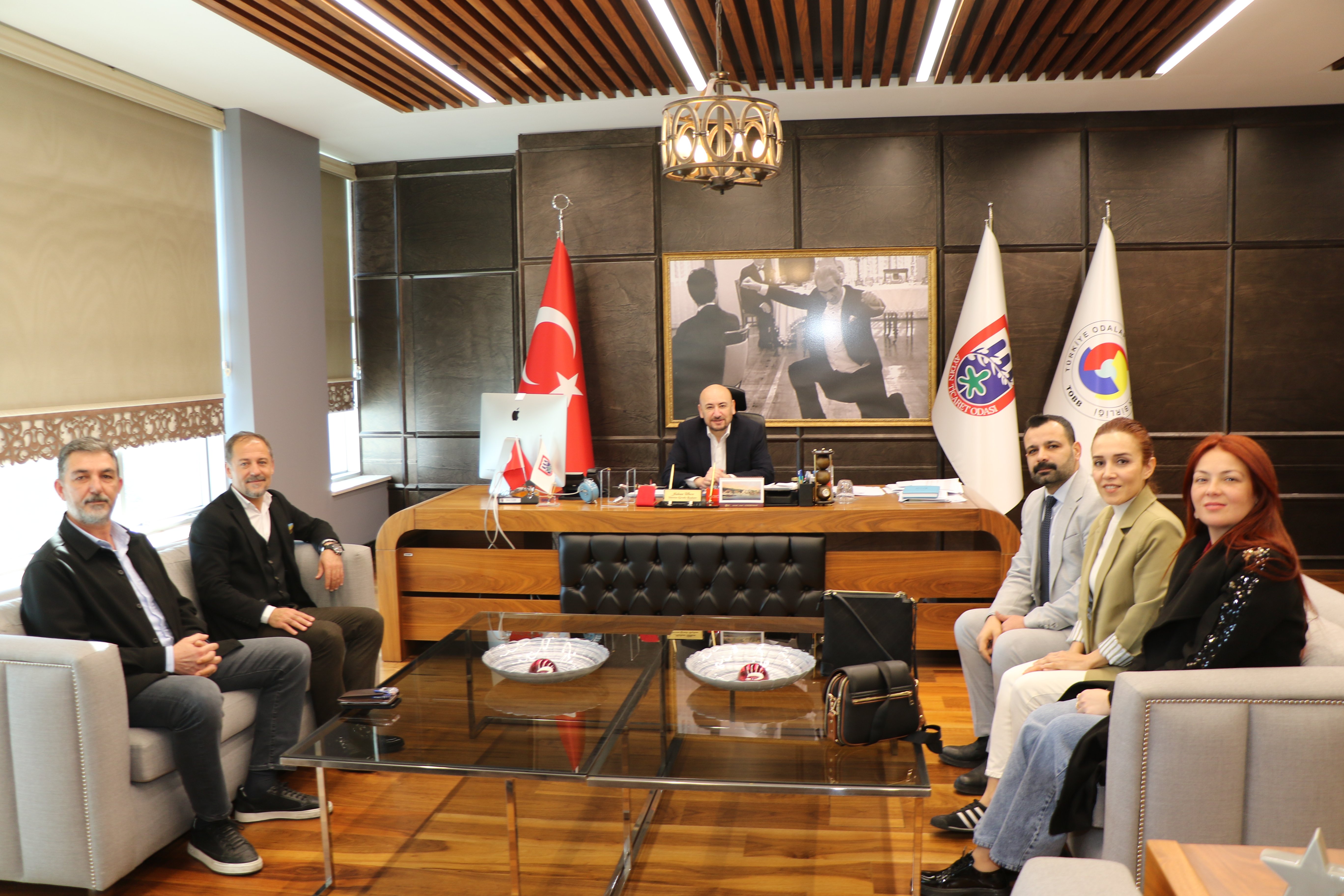 Yüksek Teknoloji Koleji Kurucusu Suat Erez ve beraberindeki heyet, TOBB Yönetim Kurulu Üyesi ve Odamız Başkanı Hakan Ülken'i makamında ziyaret etti.