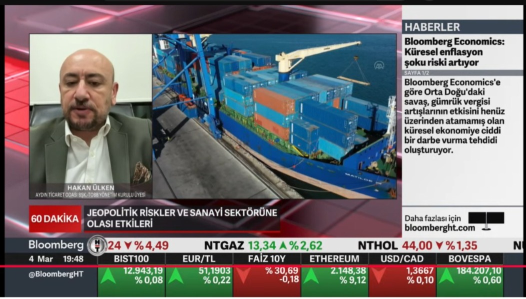 TOBB Yönetim Kurulu Üyesi ve Odamız Başkanı Hakan Ülken, Bloomberg HT’de canlı olarak ekrana gelen “60 Dakika” programına katılarak, ekonomi gündemine ilişkin değerlendirmelerde bulundu.