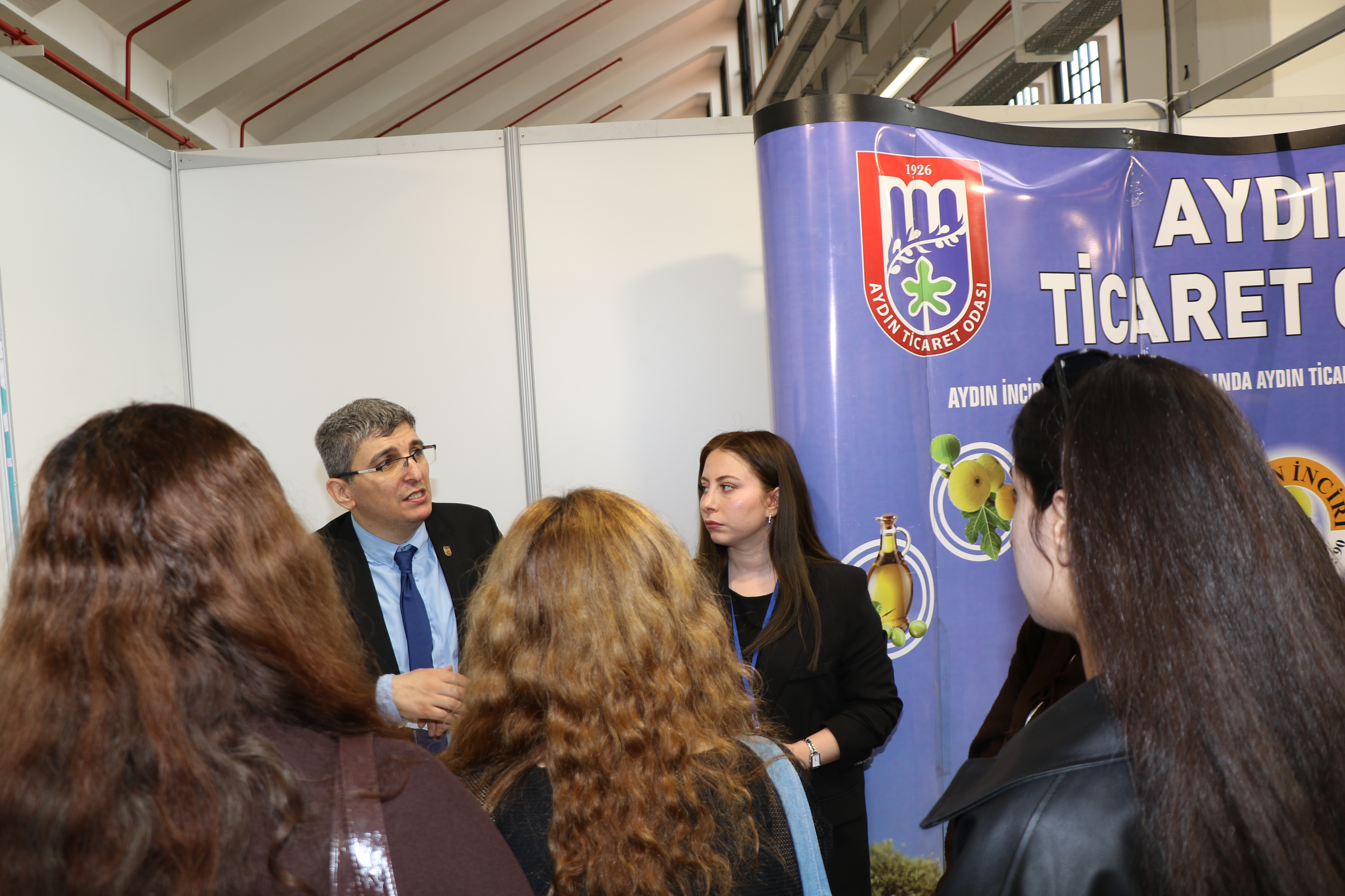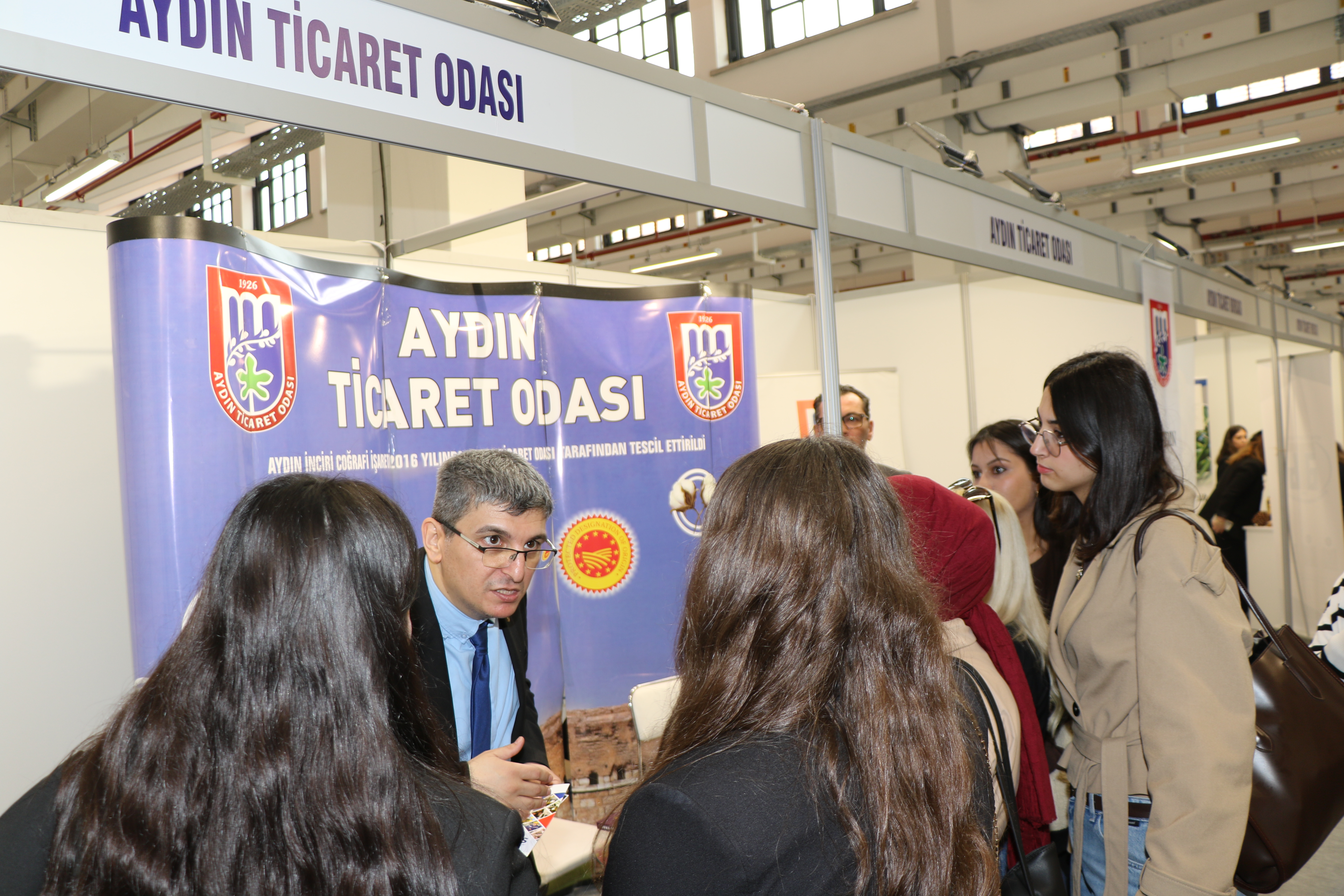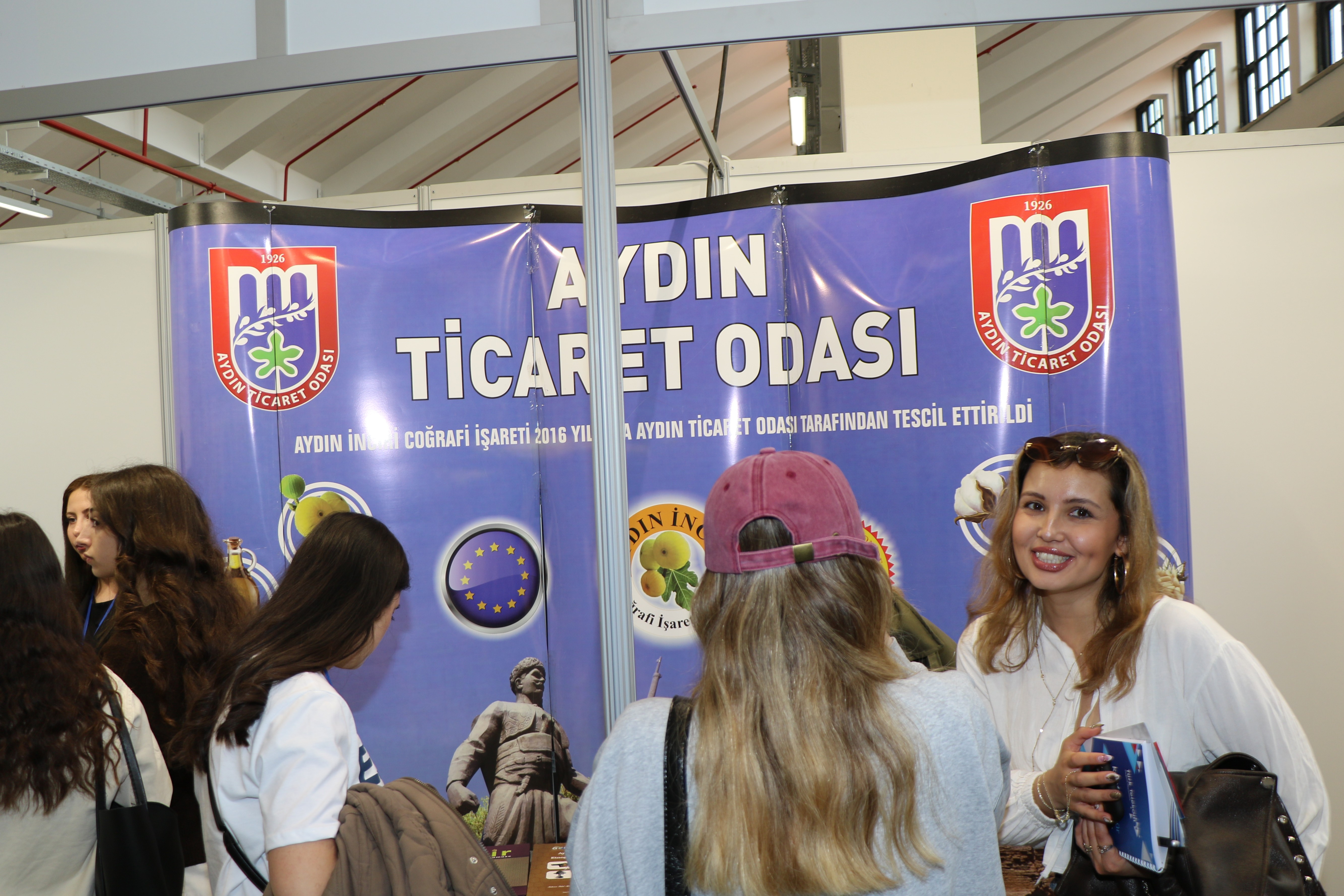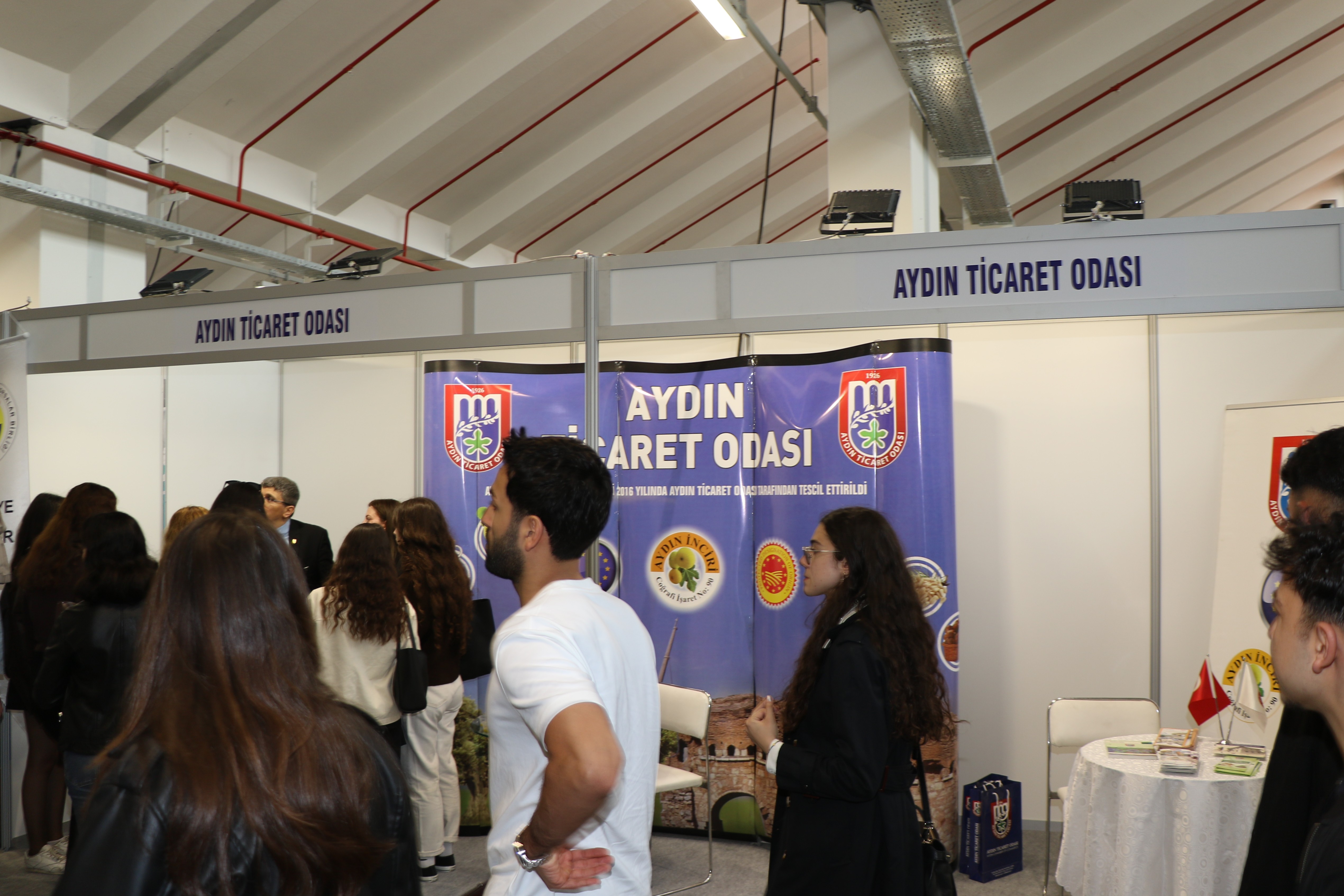 AYTO standında ziyaretçilere Aydın’ın yöresel ürünleri olan incir ve zeytinyağı ikram edilirken, Odanın faaliyetleri ile kariyer ve staj olanakları hakkında bilgilendirme yapıldı.