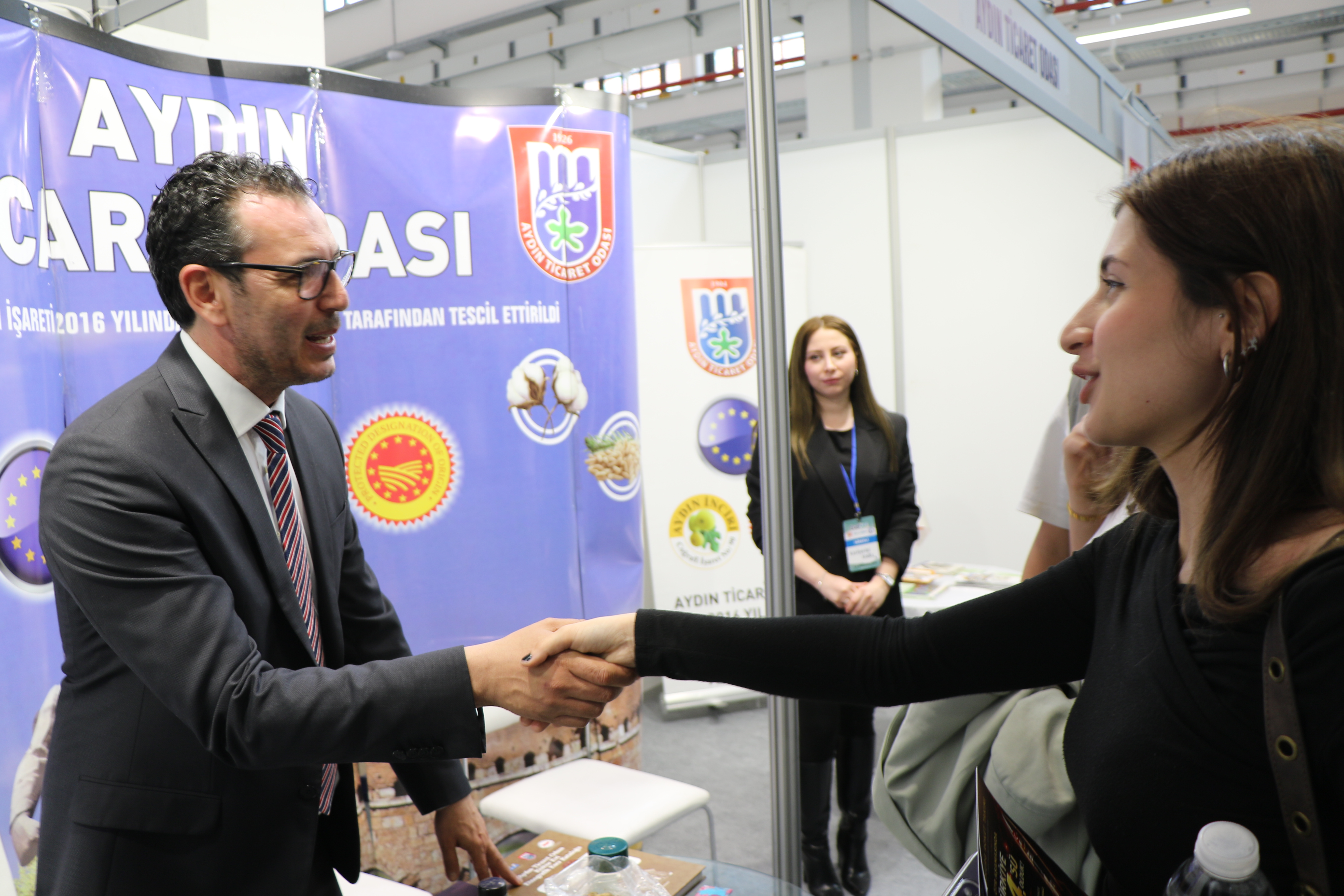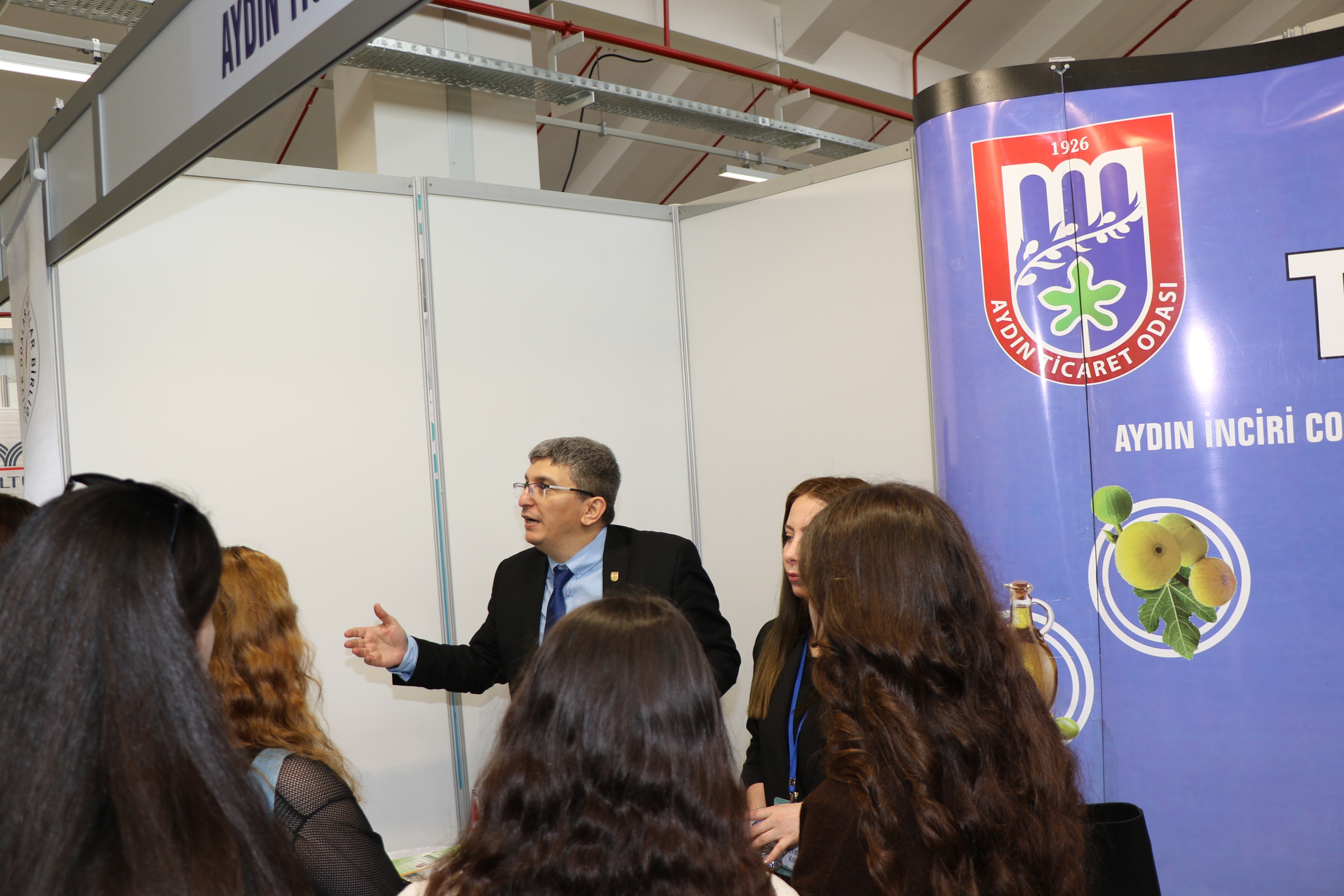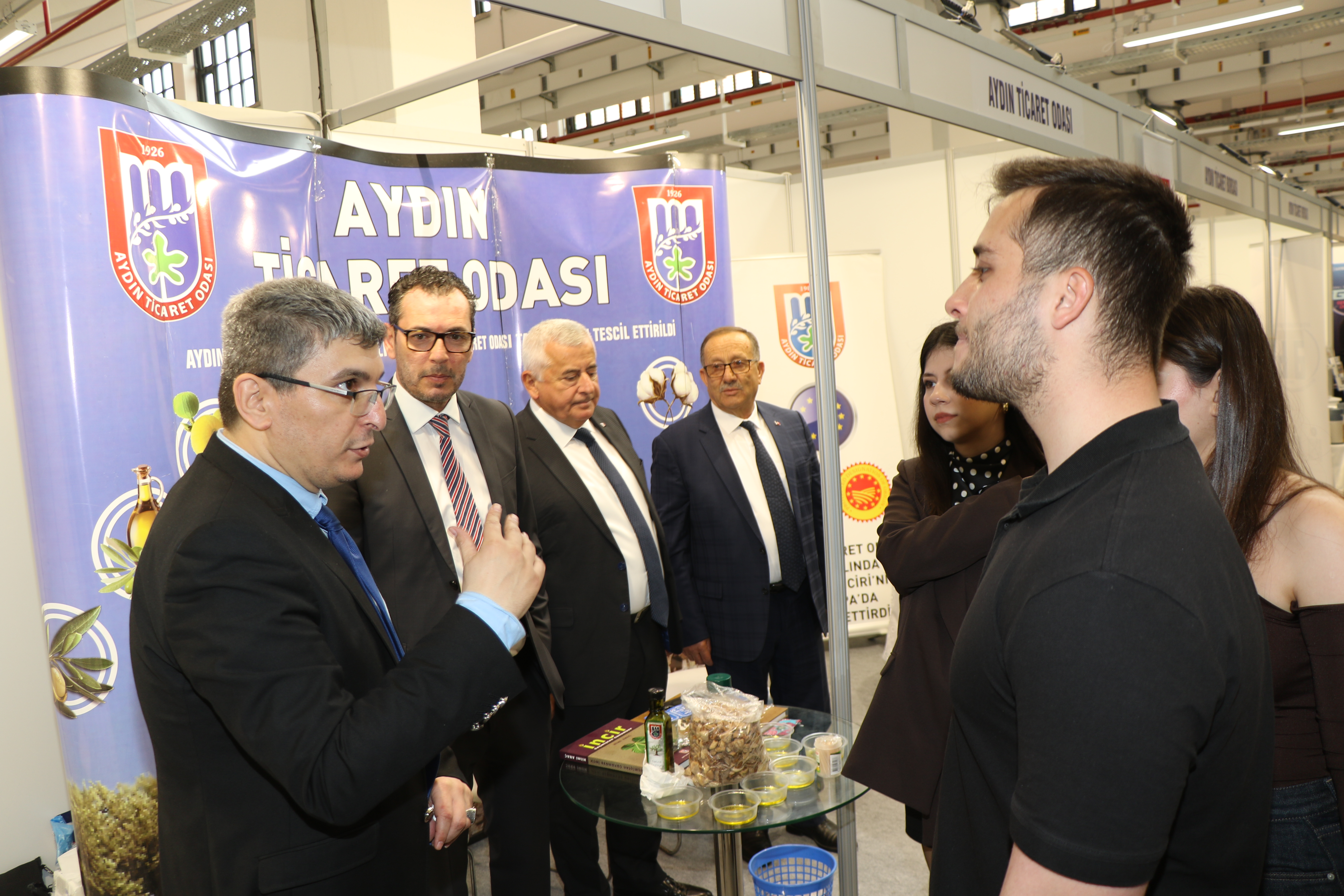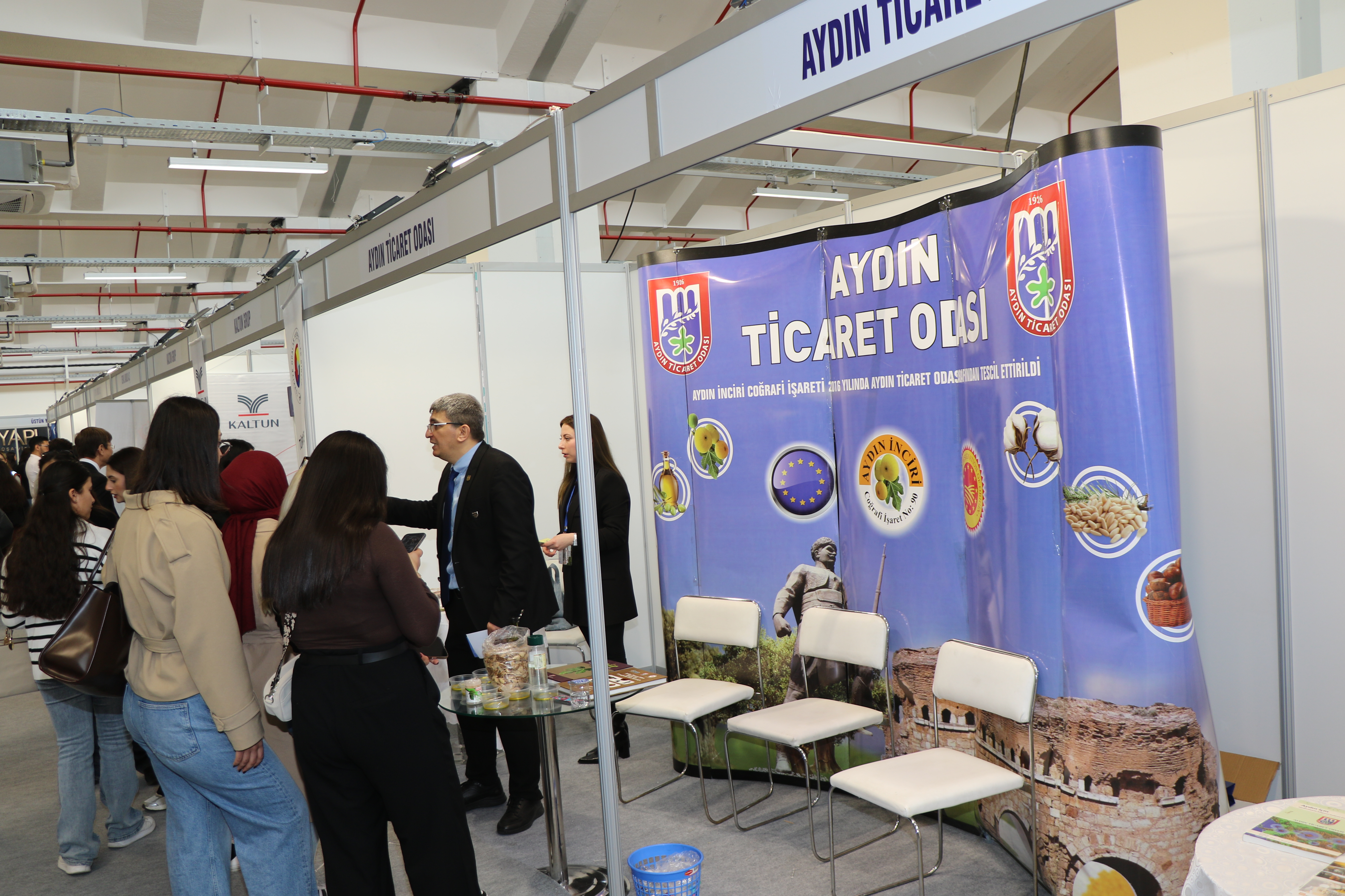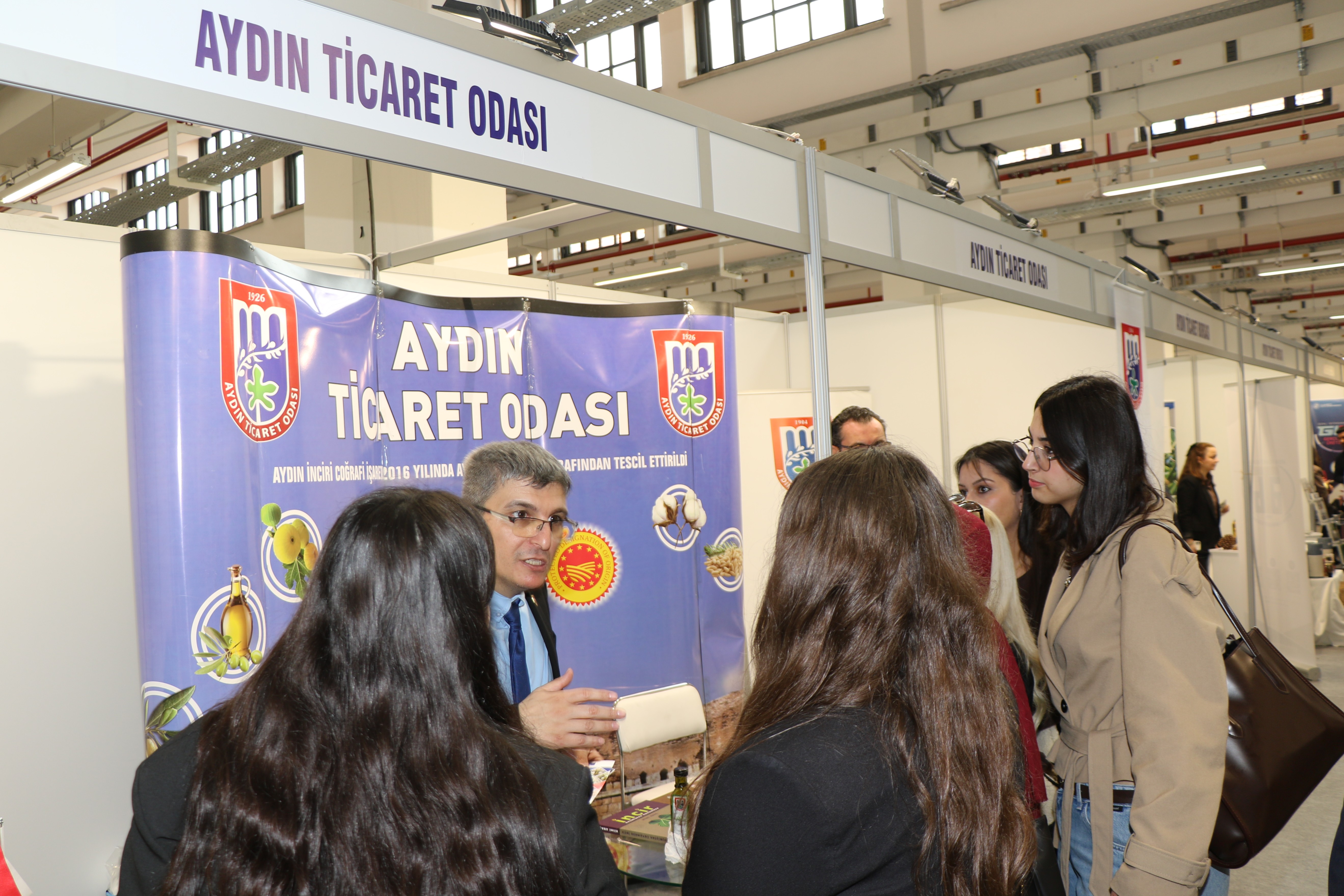 AYTO standında ziyaretçilere Aydın’ın yöresel ürünleri olan incir ve zeytinyağı ikram edilirken, Odanın faaliyetleri ile kariyer ve staj olanakları hakkında bilgilendirme yapıldı.