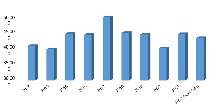 BİR ÖNCEKİ YILA GÖRE İHRACAT DEĞİŞİMİ (%) 2021 - 2022 |