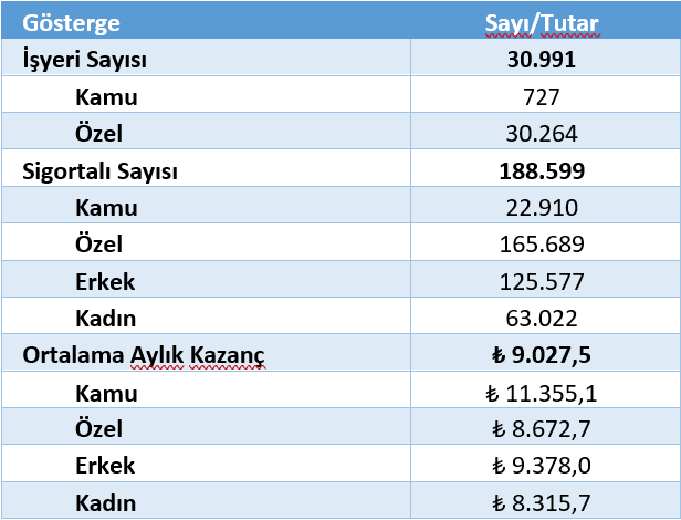 Aydın ilinde 2022 Temmuz ayı itibariyle bildirimi yapılmış 4a zorunlu sigortalı sayısı toplam 188.599 kişi iken kadın sigortalı sayısı ise 63.022 düzeyindedir. İlimizde kamuda istihdam edilen 4a zorunlu sigortalı oranı yüzde 12,1 iken özel sektörün payı yüzde 87,9 seviyesindedir. 4a zorunlu sigortalıların sigorta primine esas aylık ortalama kazancı 9.027 TL’dir.