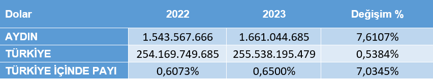 Tablo 27 Yıllara Göre Aydın İli Sektörel İhracatı ($)