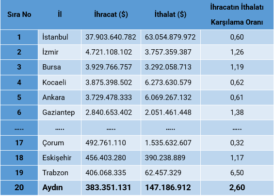 Aydın ilinde İmalat sektörünün önemi, yapılan İşgücü Piyasası Araştırmaları'nda da ortaya çıkmıştır. İldeki işletmeler içinde İmalat sektöründeki işyerlerinin oranı %21,8'dir. Türkiye genelinde benzer bir kategoride, İmalat sektöründeki işletmelerin oranı %34'tür. Bu durum, Aydın ilinde İmalat sektörünün Türkiye ortalamasının altında olduğunu göstermektedir. İmalat sektöründen sonra en fazla sayıda işletme ise Toptan ve Perakende Ticaret sektöründedir. İl genelinde Toptan ve Perakende Ticaret sektörünün payı %21,7'dir. Bu sektörlerin yanı sıra, İnşaat sektörü de önemli bir paya sahiptir ve bu üç sektör toplam istihdamın %62,9'unu oluşturmaktadır.
