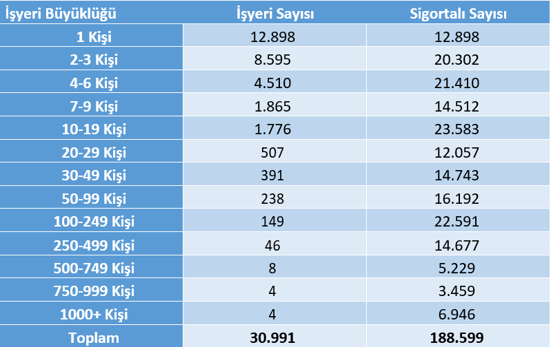 Aydın ilinde, Temmuz 2022 dönemi Sosyal Güvenlik Kurumu (SGK) verilerine göre, zorunlu 4a sigortalı istihdam eden işyeri sayısı 30.991'dir. Bu işyerlerinde toplamda 188.599 4a sigortalı çalışan istihdam edilmektedir. İl genelinde 1-9 arası çalışanı olan işyerlerinin oranı %89,9'dur. Ayrıca, ilde 100 ve üzeri çalışanı olan işyeri sayısı 211'dir ve bu işyerlerinde toplamda 52.902 çalışan istihdam edilmektedir