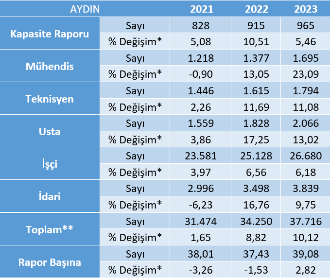Aydın ilinde, 8.883 kişilik işe yerleştirmelerde Turizm ve Otelcilik Elemanı mesleği birinci sırada yer almaktadır ve toplam işe yerleştirme içinde %36.4'lük bir paya sahiptir. Turizm ve otelcilik elemanı mesleği bir önceki yıla göre %22'lik bir artış göstermiştir. Bu artışın temel etkenleri arasında pandeminin etkisinin azalması ve seyahatlerin normale dönmesi öne çıkmaktadır.