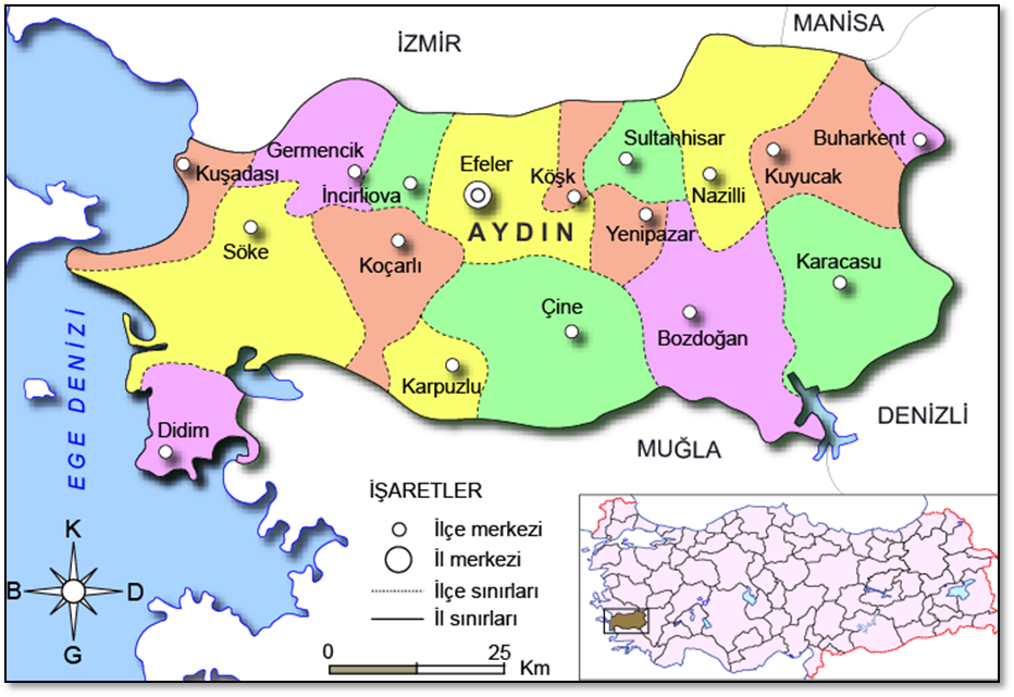 Harita 1 Aydın ili ve İlçeleri