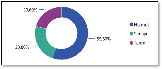 Aydın ilinde en fazla istihdam sağlayan sektör olarak %55,60 ile "Hizmet" sektöründe olduğu söylenebilecektir.